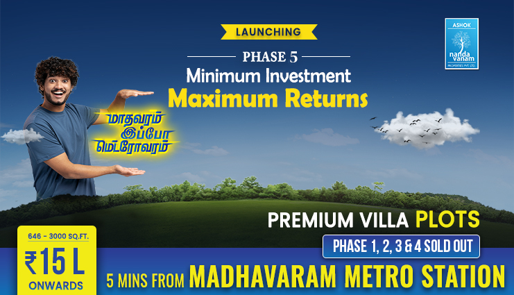 Welcome to Chennai's newfound spotlight Ashok Metrovaram Phase V, clutching 201 CMDA approved plots developed near Proposed Metro station @ Madhavaram.You are buying for building a dream home or as an investment, Ashok Metrovaram has everything to offer for everyone. Be it the first mover’s price advantage or the ever flourishing social infrastructure or the excellent connectivity to all regions of Chennai - Ashok Metrovaram has it all. As clock keeps ticking, it's better to hold this opportunity right now when it is still affordable.